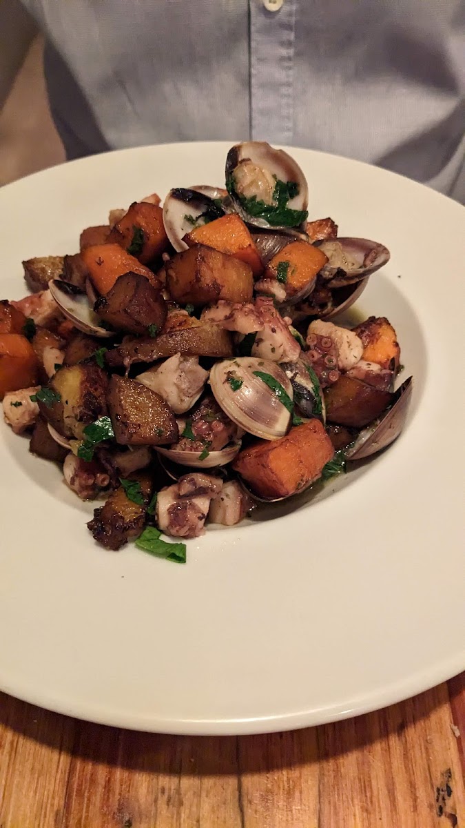 Lunch date with the Wife, We kicked off with a glass of their vihno verde on the riverside terrace before we ordered the cataplana..... We were like Russian peasants in a French patisserie.... Seriously.... It was that good.... The standard of seafood was top shelf, that fresh, it was like it jumped out the sea straight on to your plate.... This restaurant is a must visit. Get involved